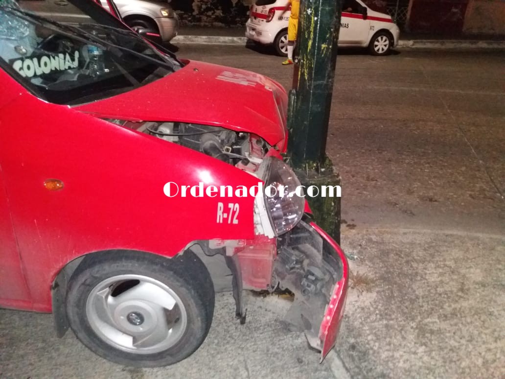 En el lugar estaba impactado en el poste un automóvil Dodge color rojo modelo 2012, con placas de circulación 8045VSS de la ruta Colonias-Centro.