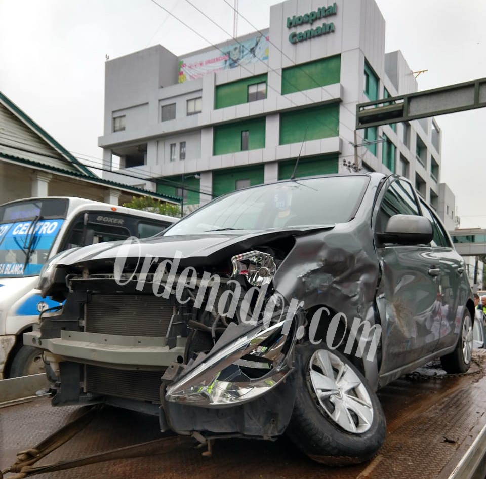 En el encontronazo participó un automóvil color gris que impactó al vehículo Nissan March habilitado como taxi, está última unidad conducida sobre la Avenida Hidalgo.