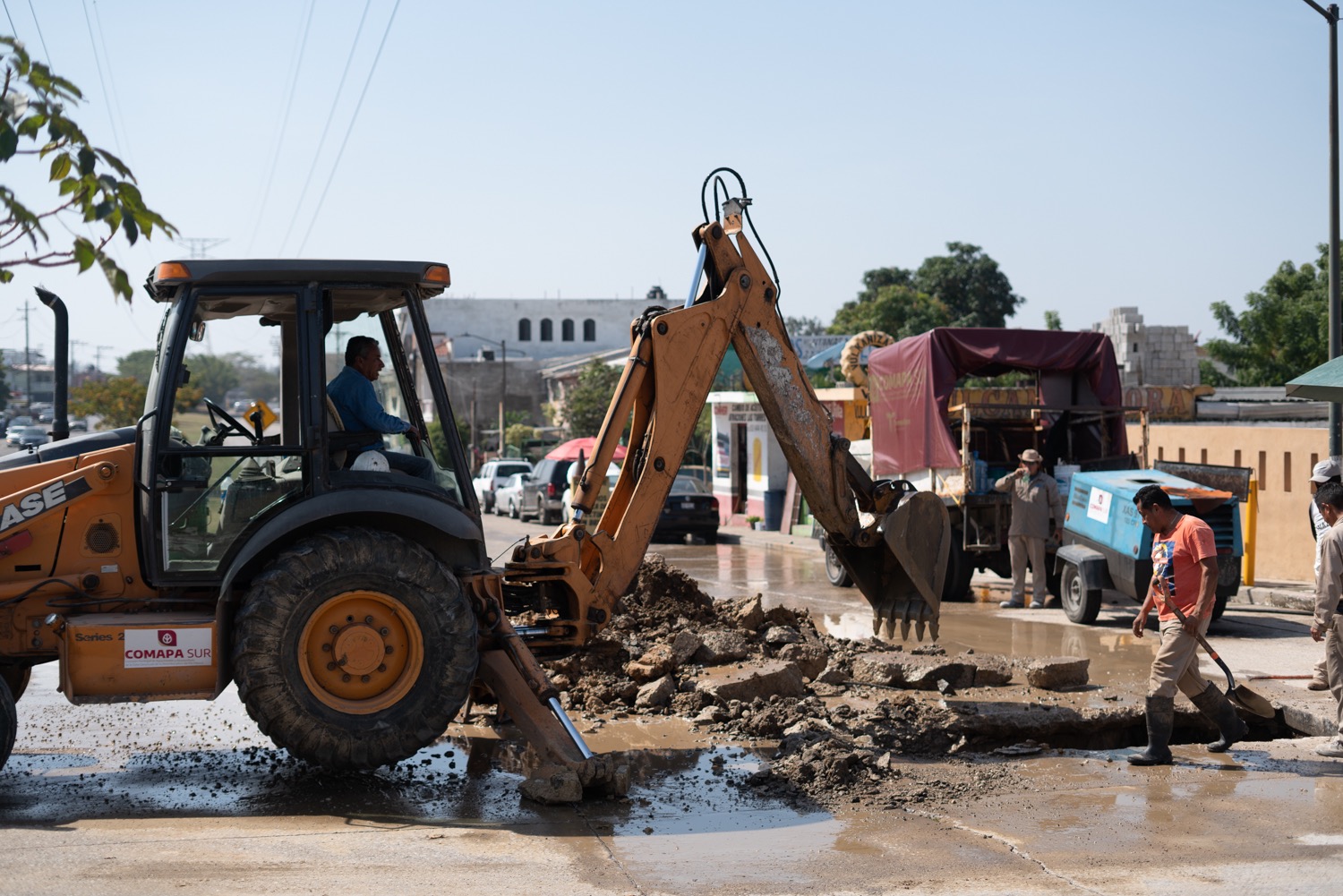 Cuadrillas de trabajadores de Comapa Sur atendieron una fuga de agua potable que se presentó en la colonia Las Américas, afectando sectores aledaños como las colonias Insurgentes, Puertas Coloradas y Colinas de San Gerardo.