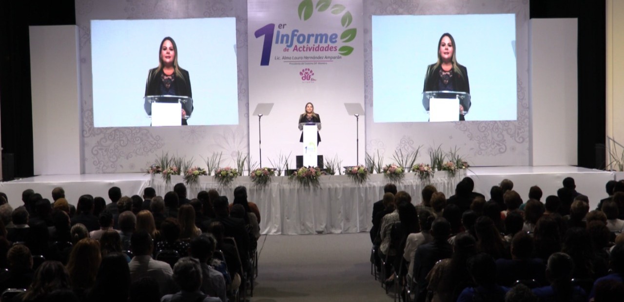 Altamia,Tamps. (11 Noviembre 2019 ) Demostrando su trabajo responsable, de compromiso y visión de futuro, con programas sociales efectuados coordinadamente con el Gobierno Municipal y que ocupan el primer lugar en todo el Estado para lograr el bienestar de las familias altamirenses, la presidenta del Sistema DIF Altamira, Alma Laura Hernández Amparán presentó su Primer Informe de Actividades donde destacó las acciones sociales comprendidas en 6 ejes que brindan múltiples beneficios a la familia, niños, mujeres, jóvenes, personas con discapacidad y adultos mayores.