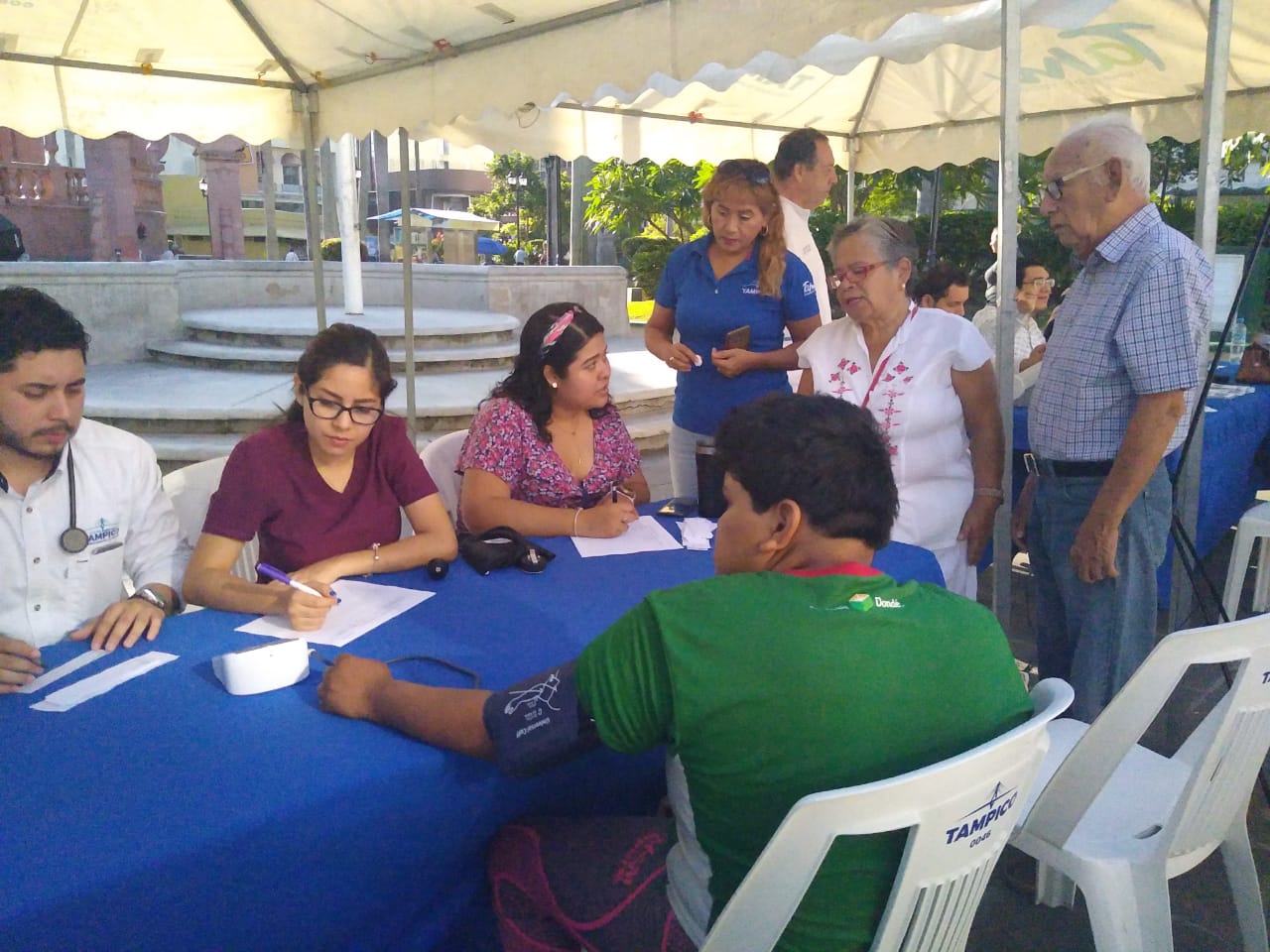 Tampico, Tamps.-. (28 Octubre 2019)300 dosis de vacuna contra la influenza se aplicaron de manera gratuita en un módulo de salud instalado ayer y hoy por el ayuntamiento de Tampico en la plaza de Armas.