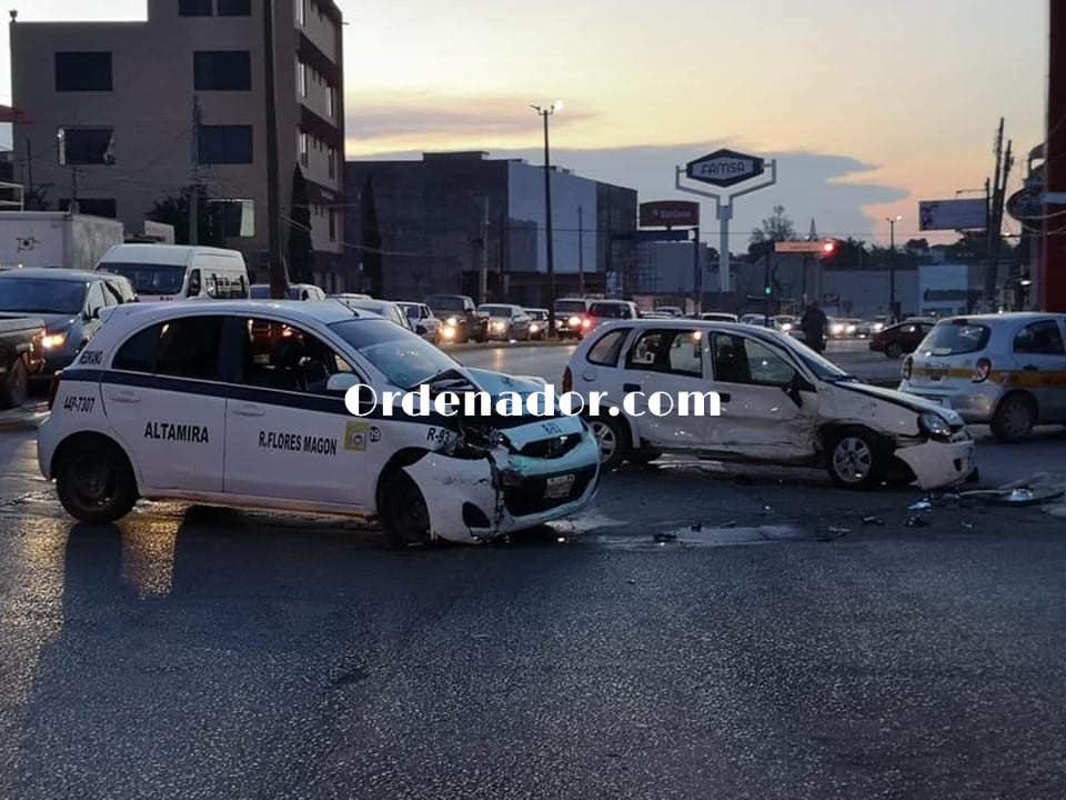 Este accidente ocurrió en el Bulevar Allende y calle Matamoros, frente a una estación de servicio de gasolina, en donde participaron un carro de la marca March de la ruta Altamira-Flores Magón y un carro particular de la marca Chevrolet Chevy en color blando.