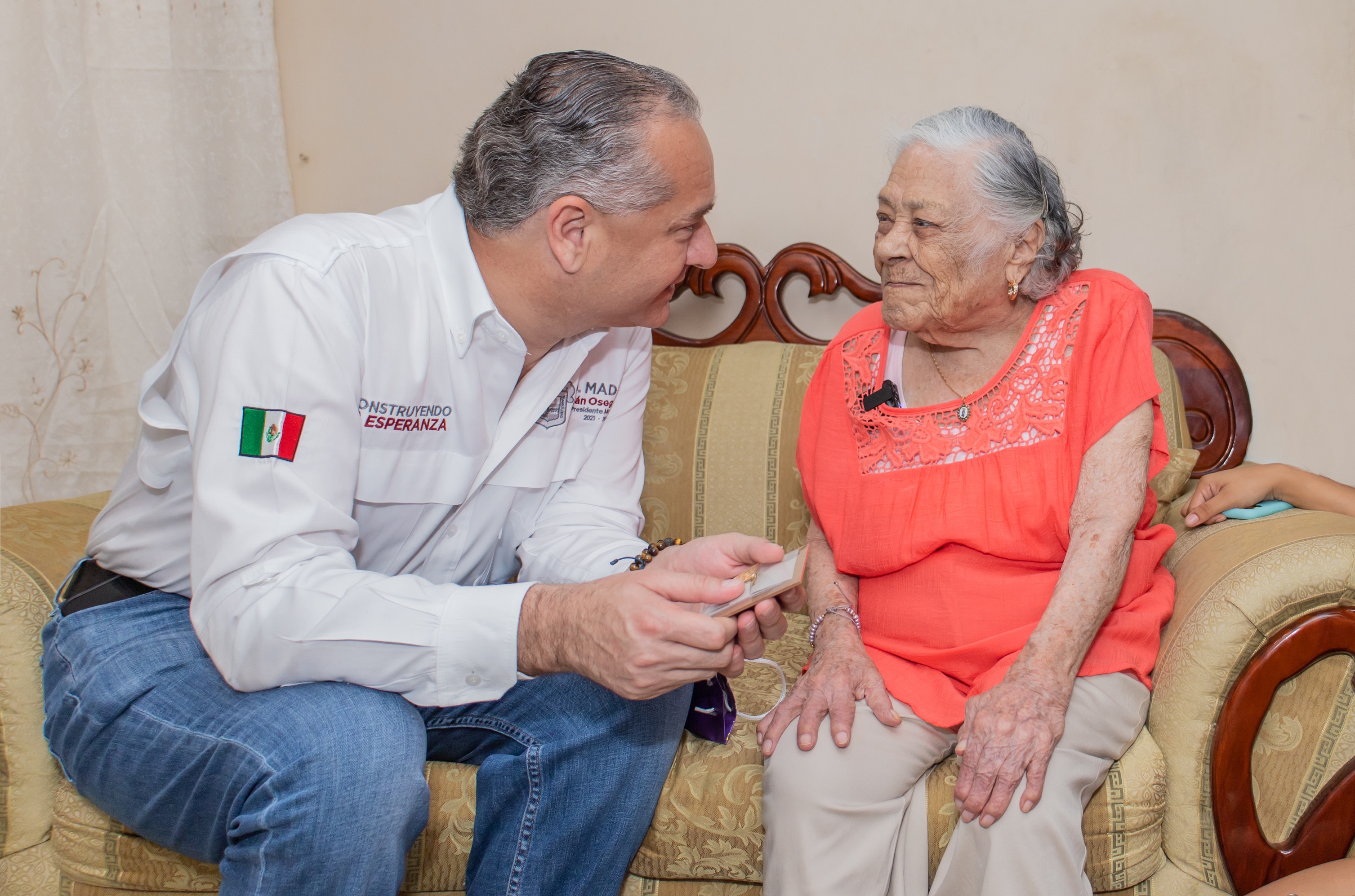 Cd. Madero, Tamps. (5 Julio 2023)Como un gesto de admiración y respeto hacia los adultos mayores de Ciudad Madero, el alcalde Adrián Oseguera Kernion, continúa reconociendo a los abuelitos centenarios que son parte importante de la historia del municipio.
