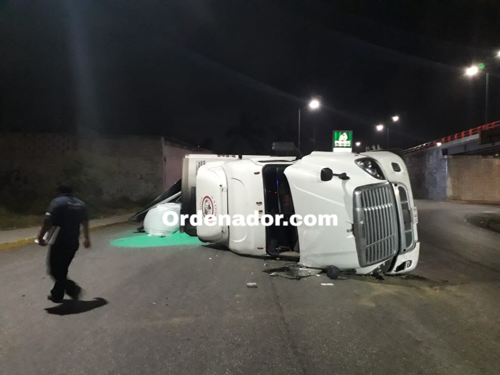 El aparatoso accidente ocurrió durante la noche en la lateral sur-norte del puente del paso a desnivel conocido como el Barquito, zona que fue cerrada a la circulación por elementos de tránsito mientras se realizaban las maniobras para retirar el vehículo.