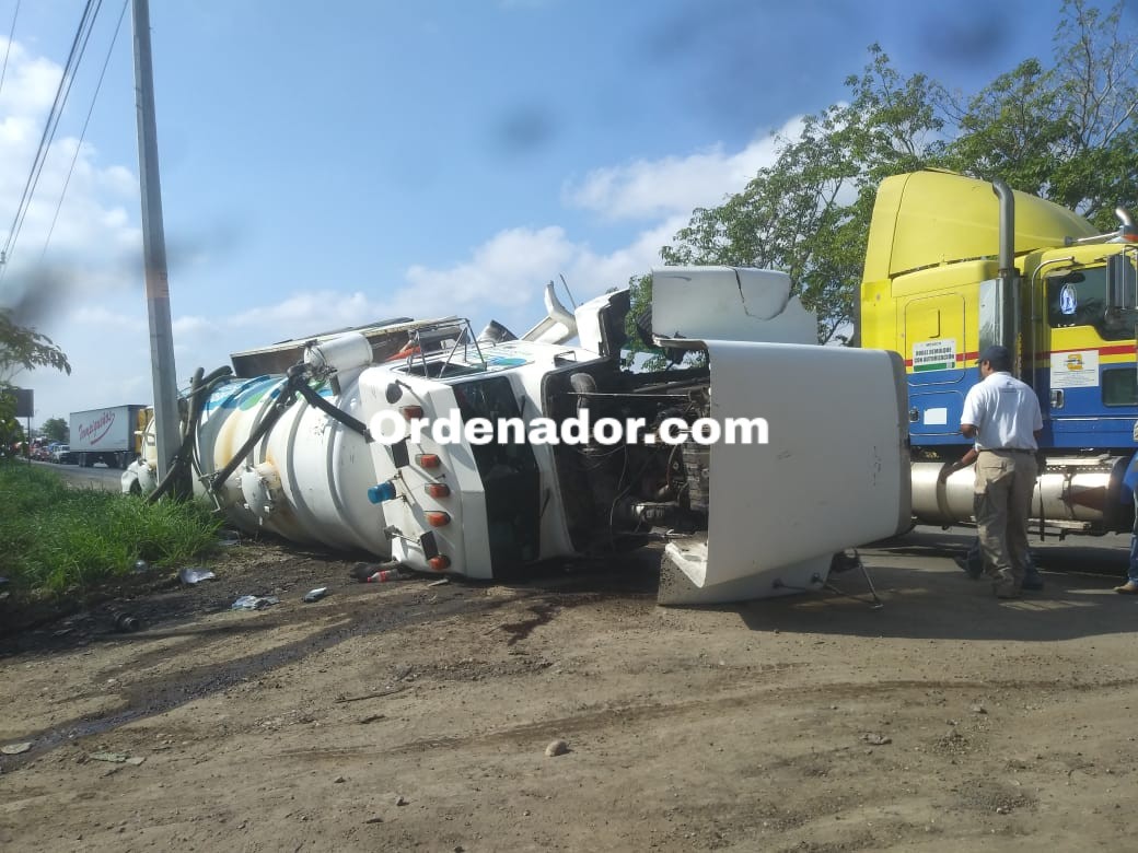 Volcó tráiler que arrastraba pipa